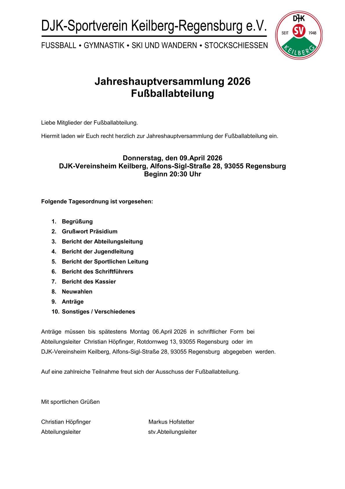 Impressum · Content © 2026 by DJK SV Keilberg · Design © 2026 by A. Dirscherl Mediengestaltung